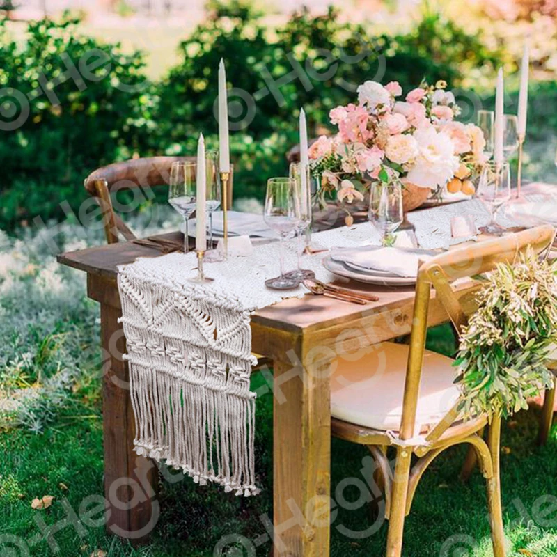 12x71in Macrame Table Runner With Tassels Boho Decoration Rustic