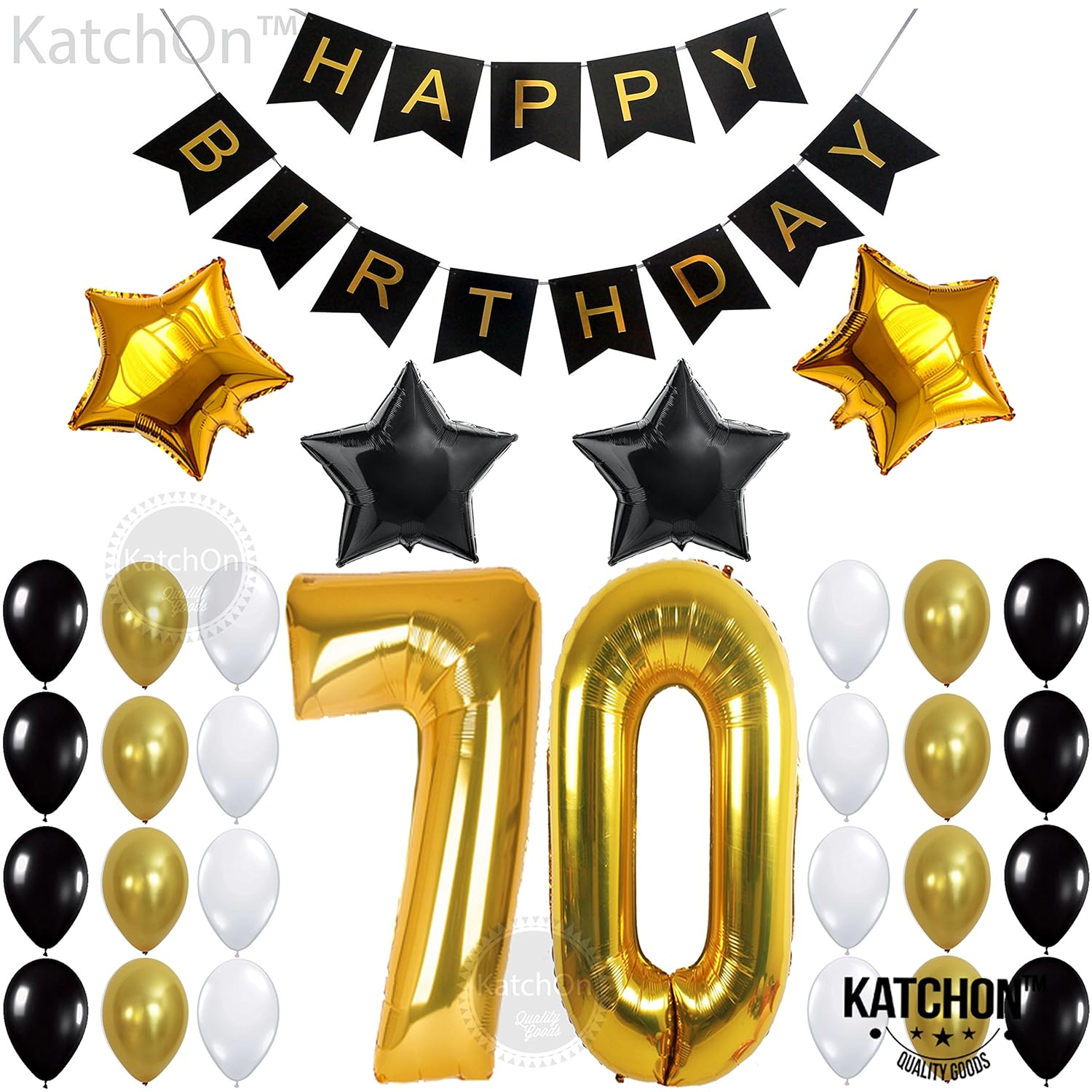 70th Birthday Party Decorations Kit For Men Women Black Gold Happy