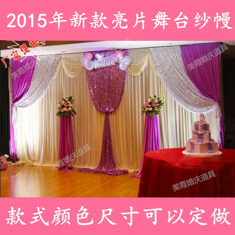 2015 Hotsale Lavender Ice Silk Wedding Backdrops For Wedding