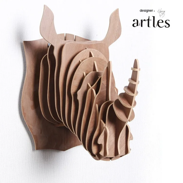 India Africa Rhino Head Wall Decor Diy Wood Wooden Animal Head